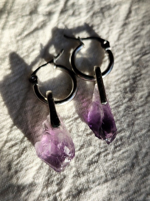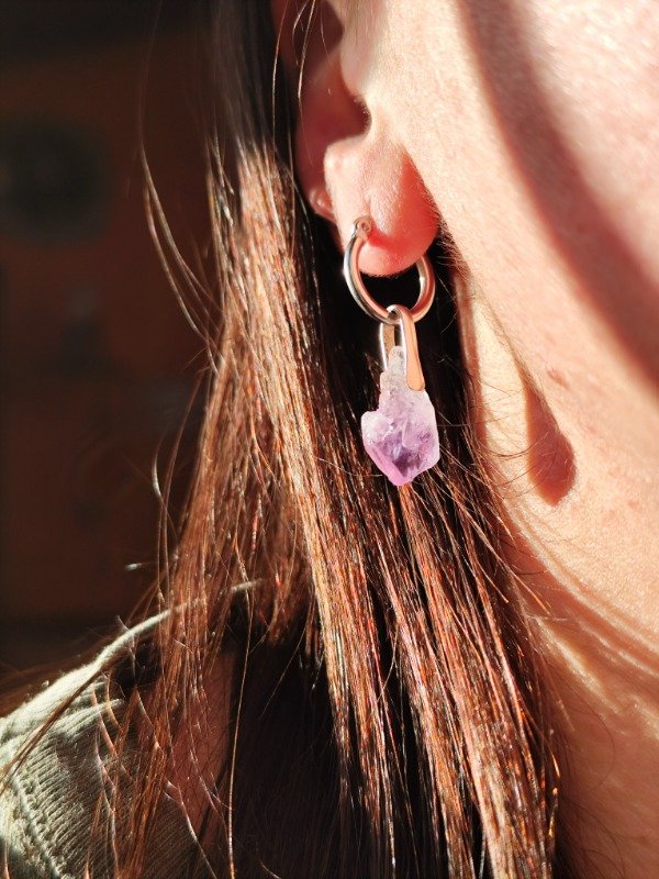 AROS DE PIEDRAS PICO DE AMATISTA Y ACERO QUIRÚRGICO