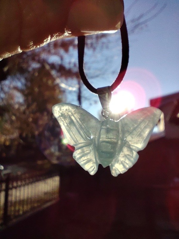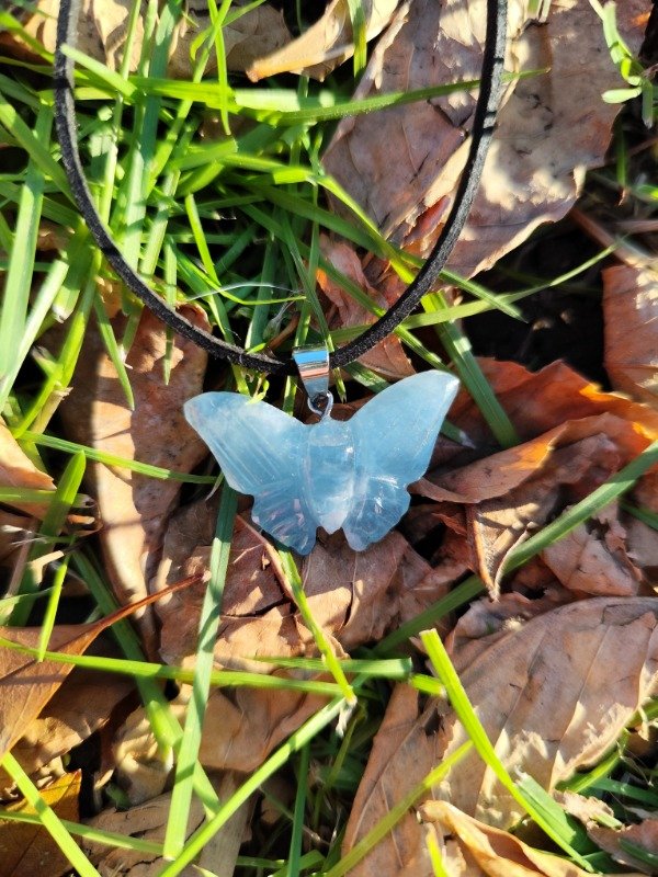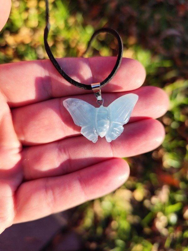 Collar Mariposa 🦋 en Ónix Cielo. Incluye cordón de gamuza con ganchito.