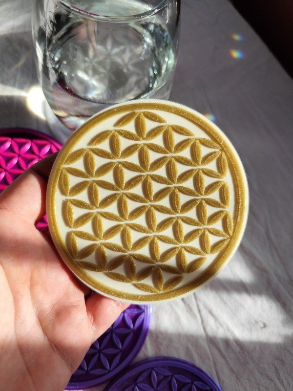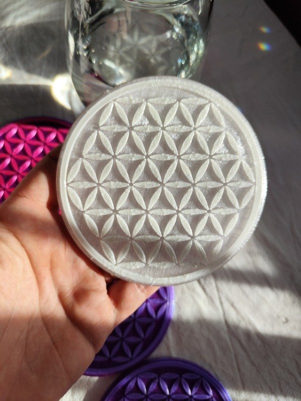 Comprobado por Radiestesia ✅ al colocar tu vaso de agua por 1 minuto sobre el posavasos Flor de la Vida, la frecuencia del agua respecto a la salud humana aumenta a más del doble.