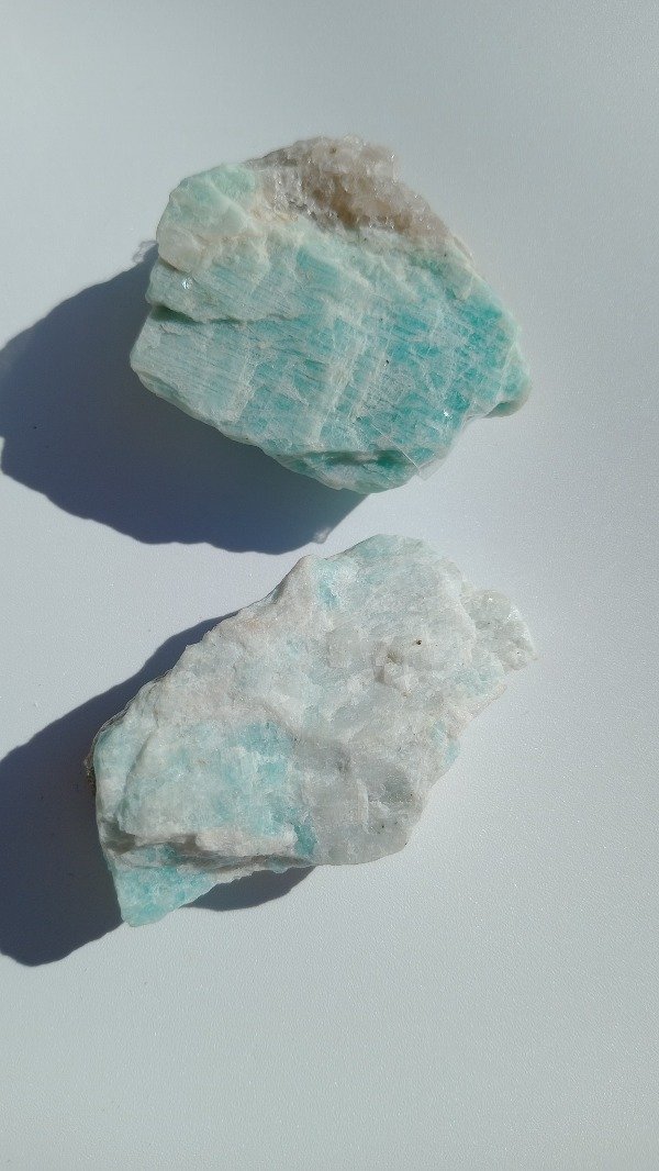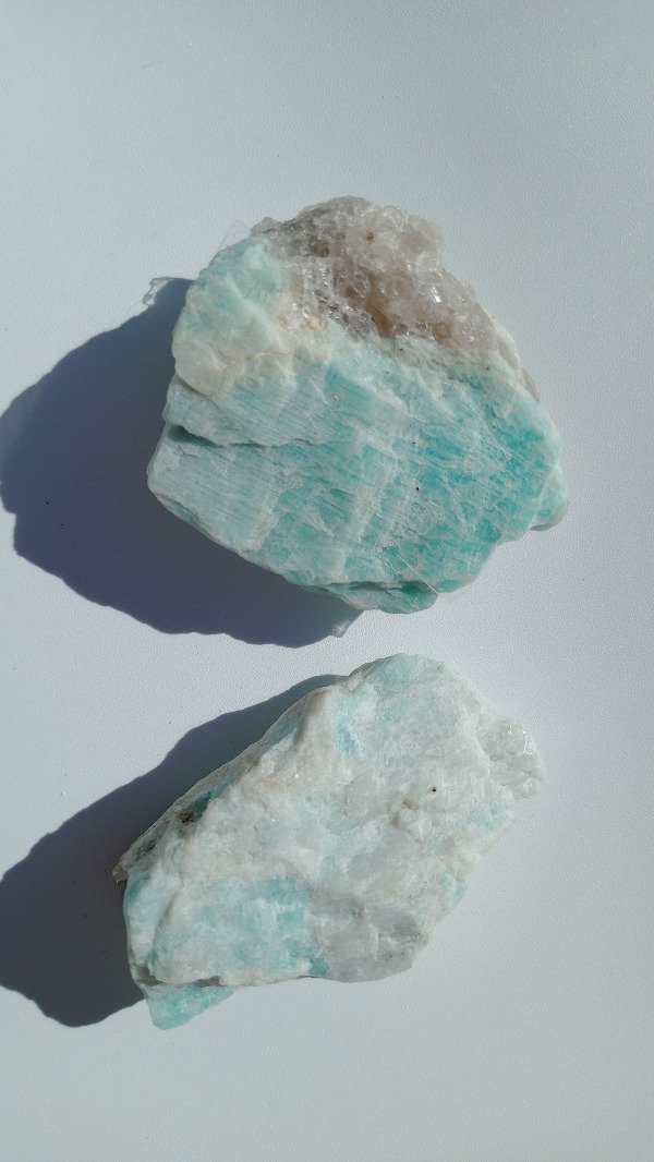 La amazonita se asocia al 4º y 5º chakra, en la zona del corazón y la garganta. Es una piedra relajante, refrescante y amorosa. Ayuda a liberar de ataduras y bloqueos, y fomenta el equilibrio emocional y la seguridad en uno mismo. Suele ser de ayuda en situaciones de cambio o duelo. La amazonita también es conocida por funcionar como protectora de la contaminación electromagnética. A nivel curativo se dice que ayuda a calmar el sistema nervioso.