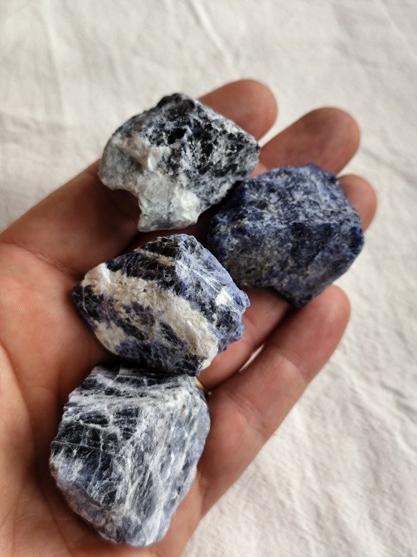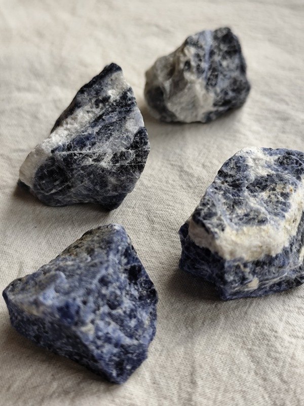 La sodalita se asocia al 5º chakra, equilibrando la comunicación y la expresión. También suele aplicarse al 6º chakra, propiciando la expansión de conciencia y fortaleciendo el intelecto. En diferentes tradiciones se la considera la piedra que abre el tercer ojo.