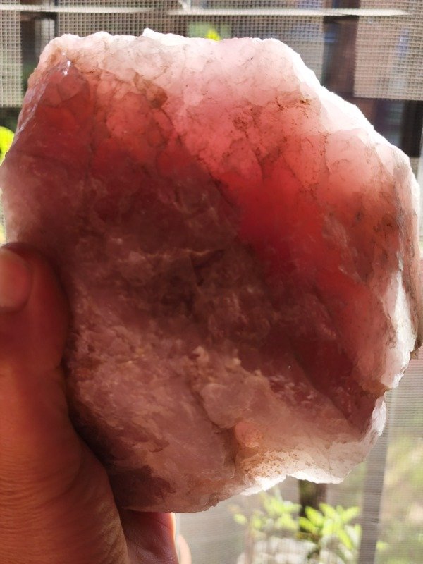 Hermosa pieza de CUARZO ROSA con algunas inclusiones de Cuarzo Blanco.