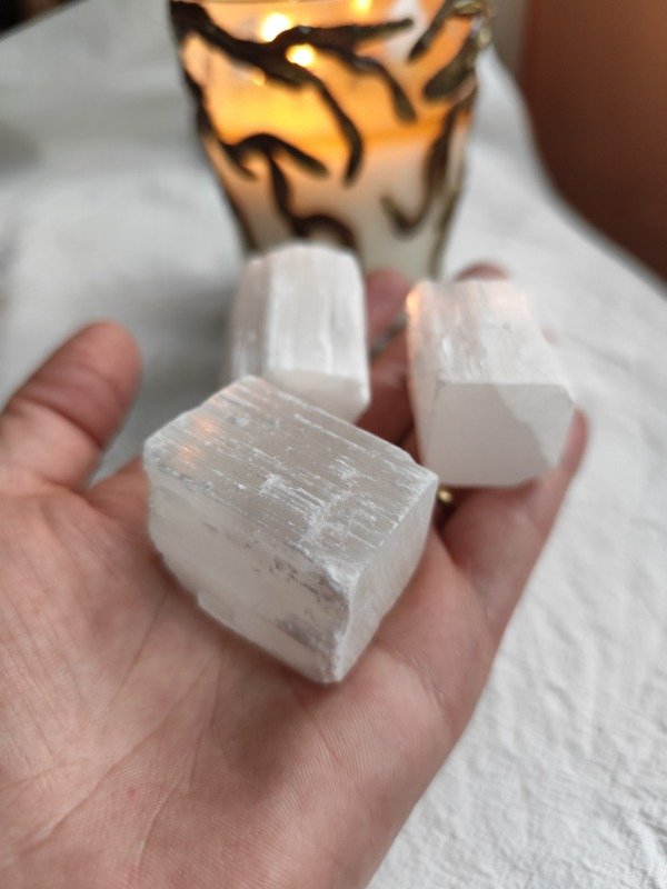 La selenita simboliza la pureza espiritual. Infunde paz profunda y se recomienda para la meditación. Se considera una piedra para la expansión de la consciencia y para activar los centros de energía superiores, como el chakra de la corona. La selenita ayuda a calmar la mente y favorece la claridad y la lucidez.
