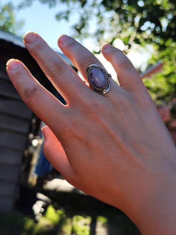 Anillo de alpaca regulable (talle único) con piedra natural Amatista.