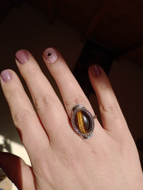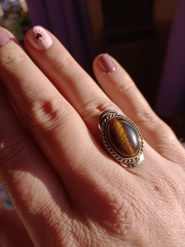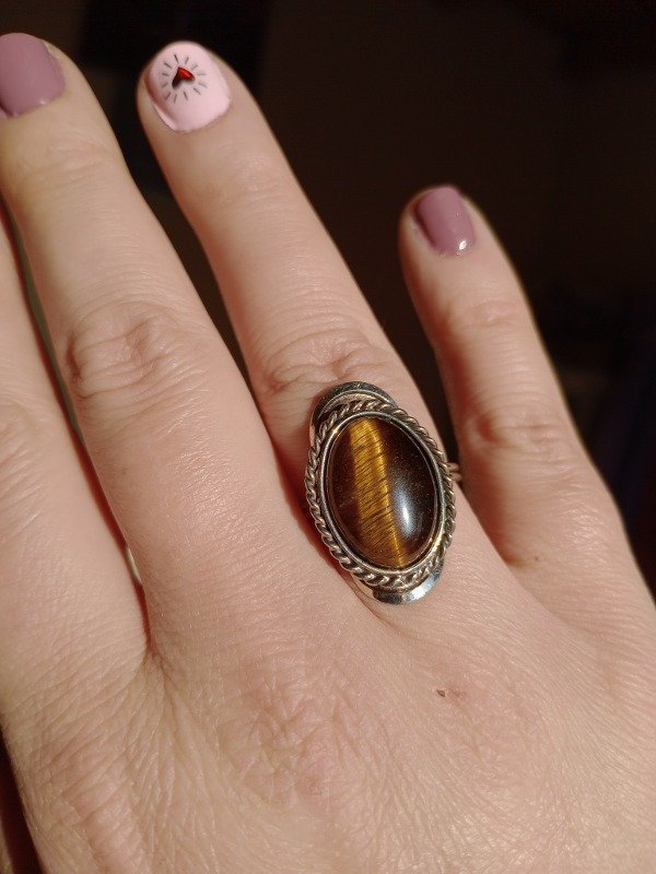 Anillo de alpaca regulable (talle único) con piedra natural de Ojo de Tigre.