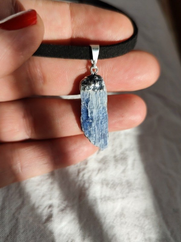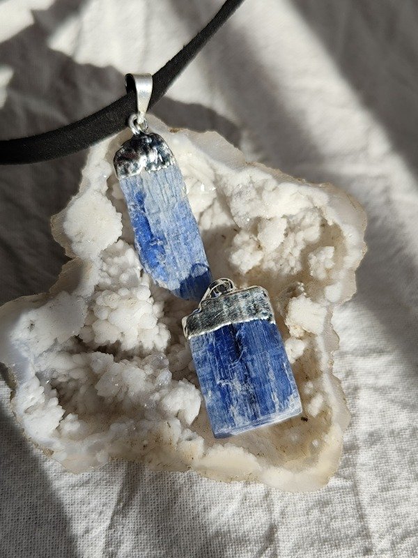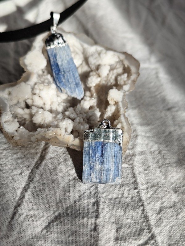 COLLAR DE CIANITA AZUL EN BRUTO CON BAÑO DE PLATA.