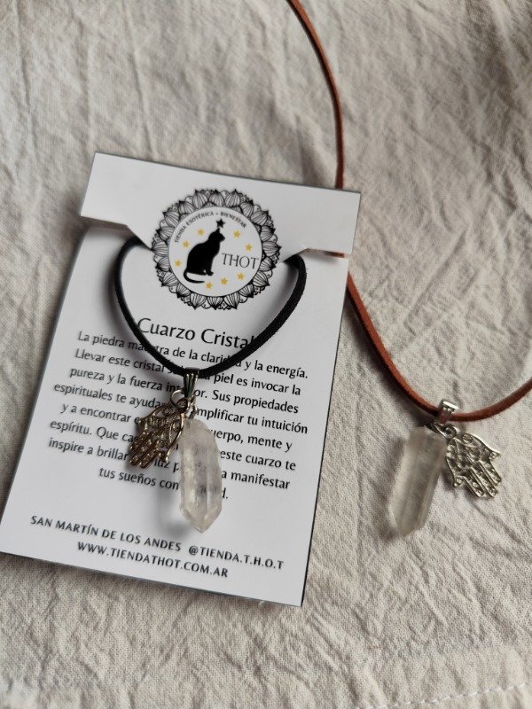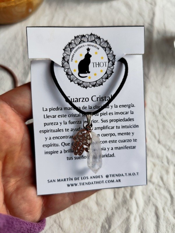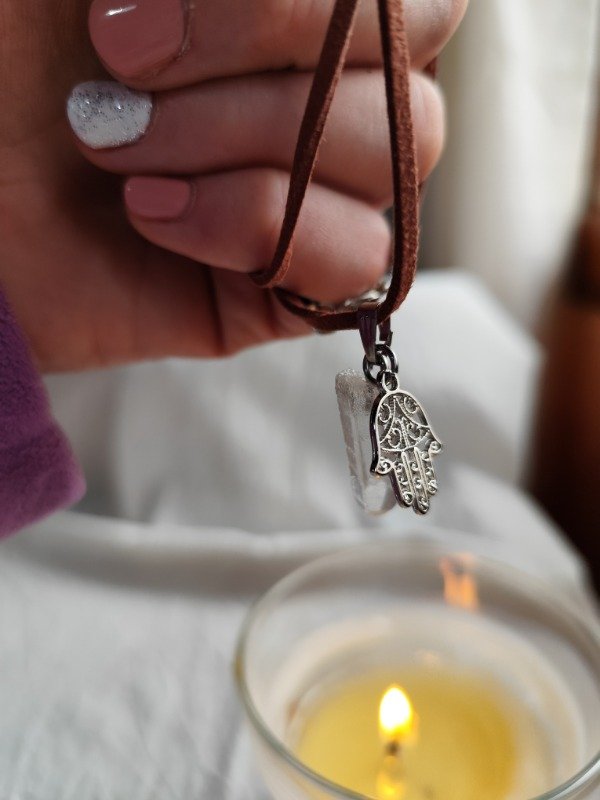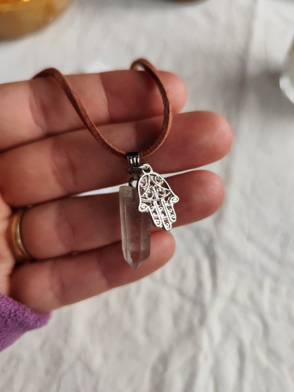 COLLAR PUNTA DE CUARZO CRISTAL CON DIJE DE MANO DE FÁTIMA - PROTECCIÓN
