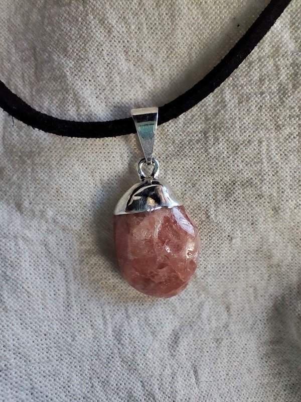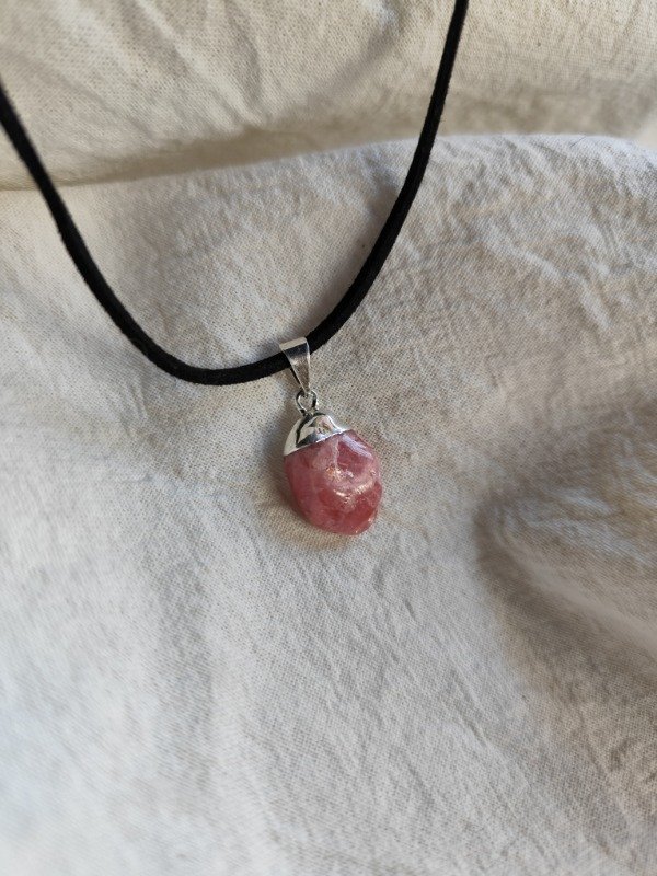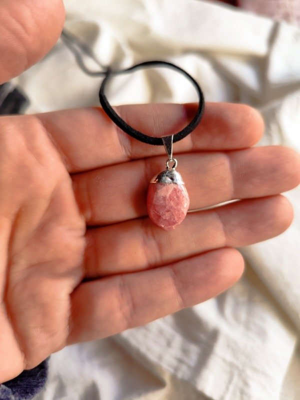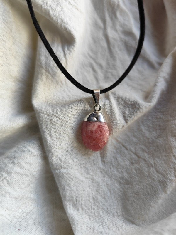 COLLAR DE RODOCROSITA ROLADA CON BAÑO DE PLATA. Incluye cordón de gamuza con ganchito.