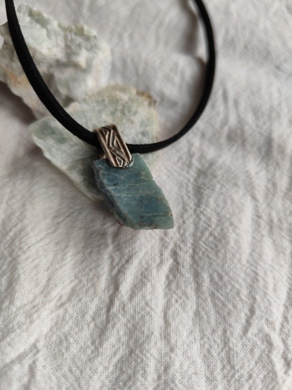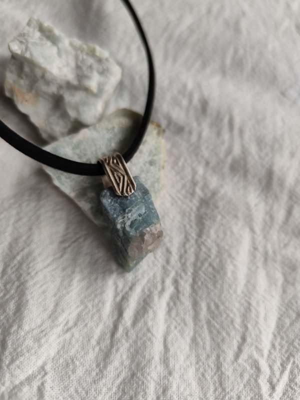 COLLAR DE PIEDRA AGUAMARINA CON ENGARCE DE ALPACA.