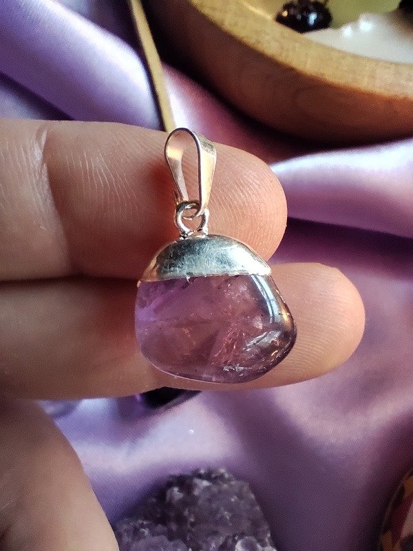 La amatista es una piedra extraordinariamente poderosa y protectora, con una elevada vibración espiritual. Protege del ataque psíquico transmutando la energía en amor, Siendo un tranquilizante natural, la amatista bloquea las tensiones geopáticas y las energias ambientales negativas. Su serenidad potencia los estados elevados de conciencia y meditación. Tiene grandes poderes curativos y limpiadores, y potencia la conciencia espiritual Tradicionalmente se llevaba puesta para evitar la borrachera, y tiende a producir sobriedad en las pasiones fisicas. Supera adicciones y bloqueos de todo tipo Usada a nivel superior, la amatista te abre a otra realidad.
