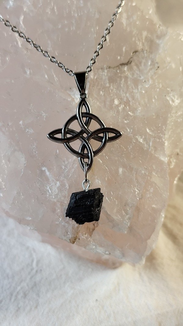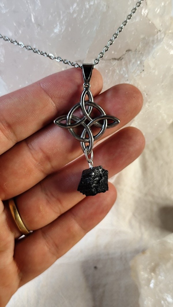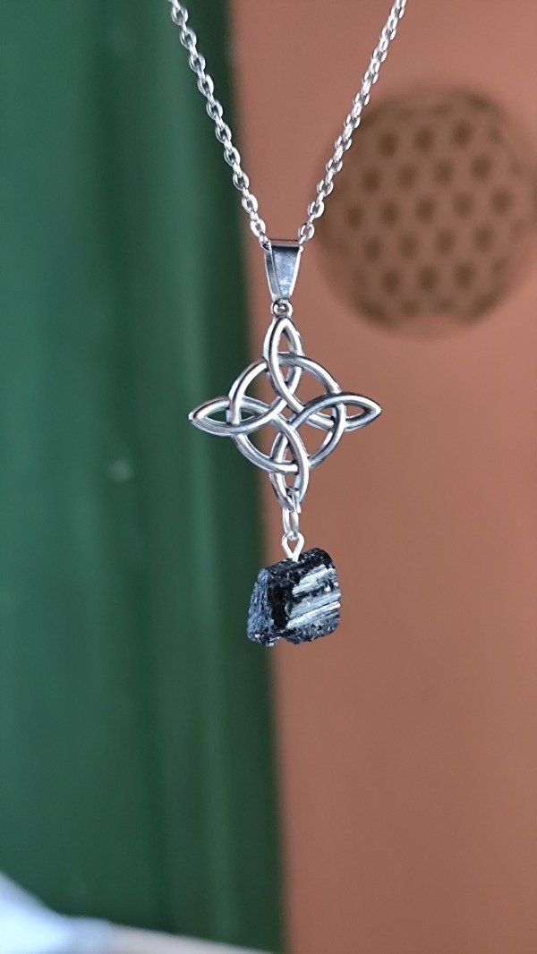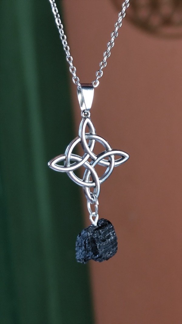 Collar amuleto de protección con Nudo de bruja macizo y Turmalina negra.