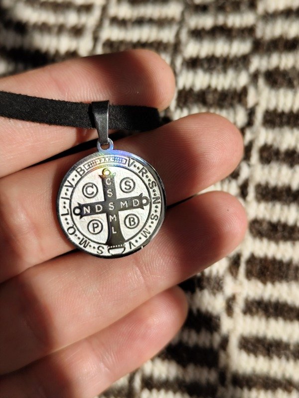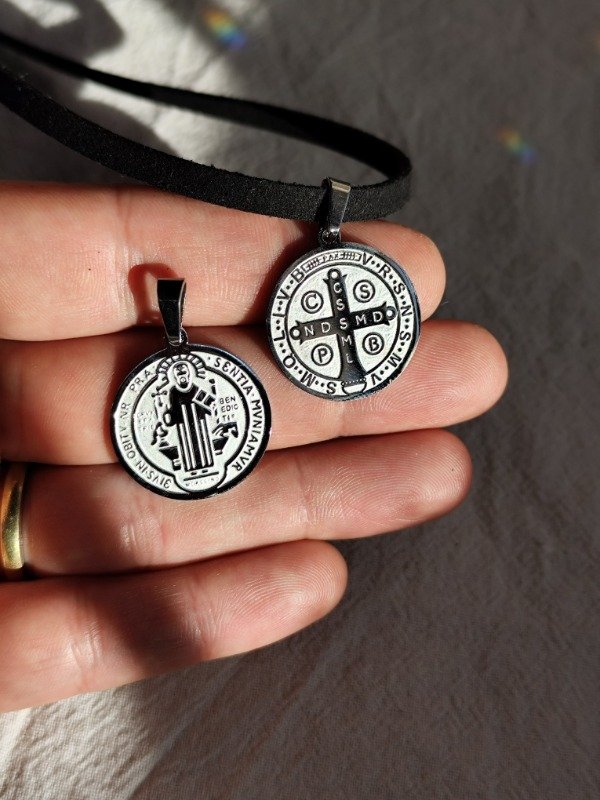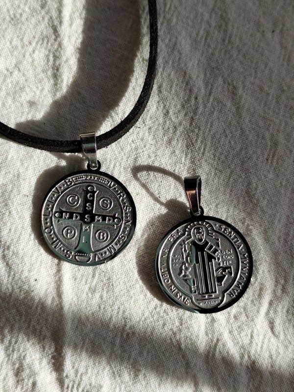 Acero quirúrgico. Grabado en relieve. Incluye cordón de gamuza.