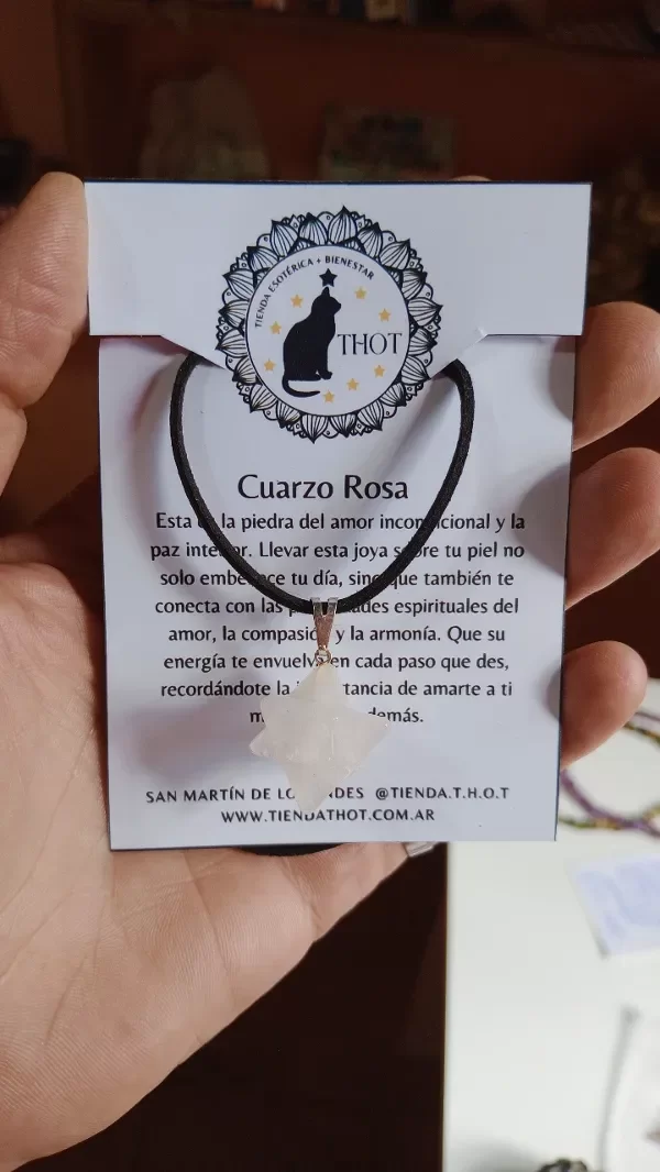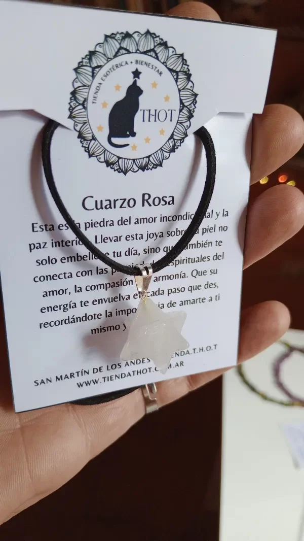 COLLAR MERKABA EN CUARZO ROSA.