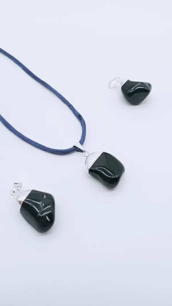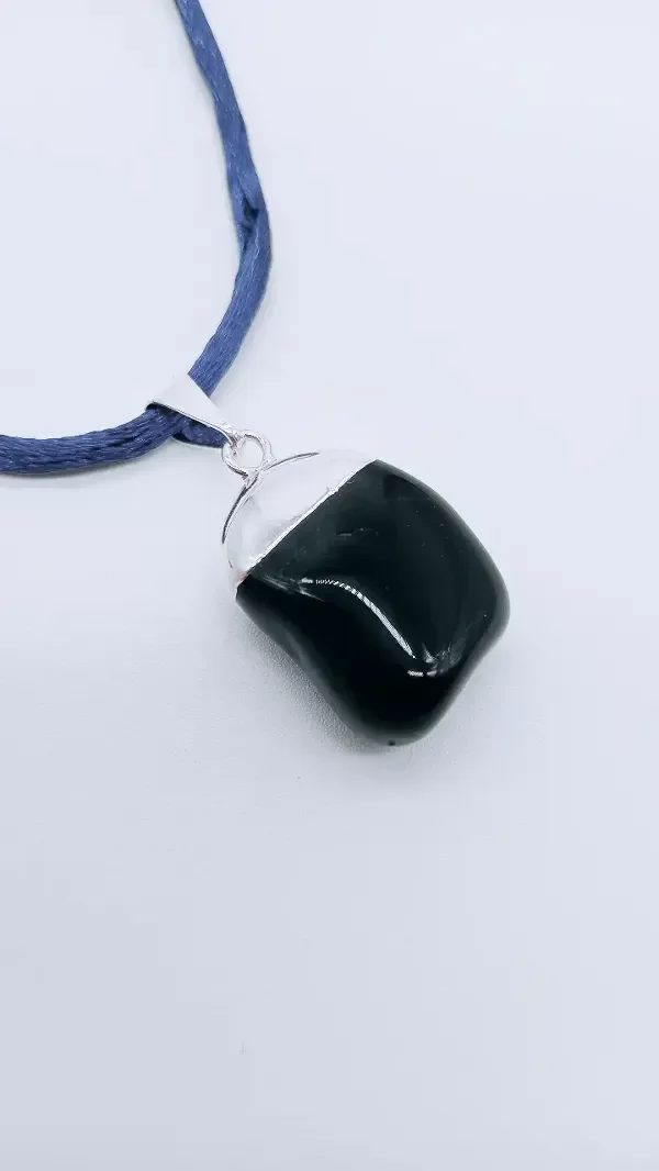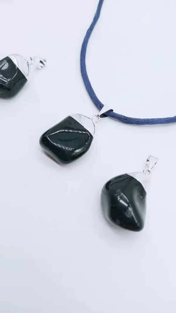 Dije de Ónix Negro con baño de plata.
