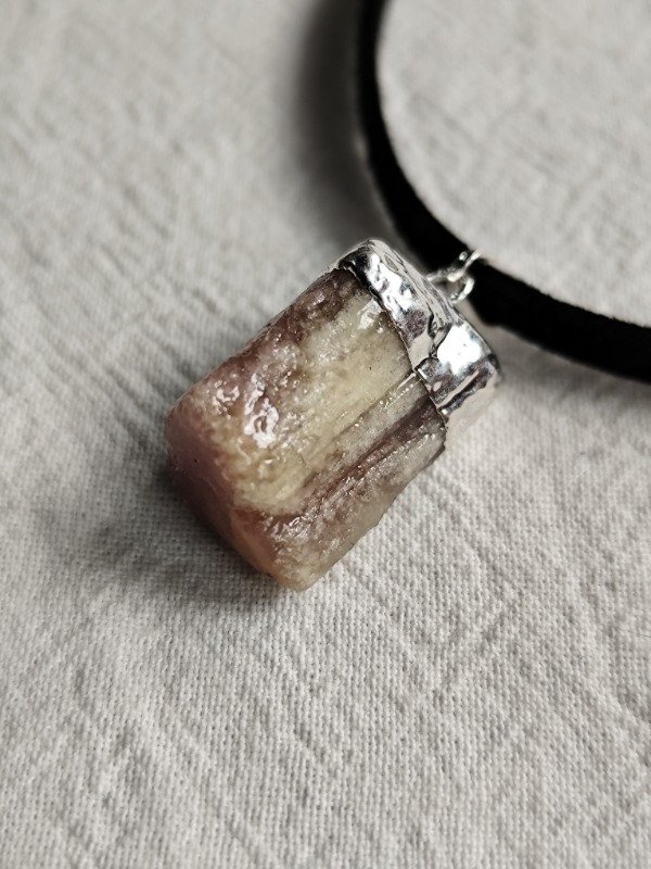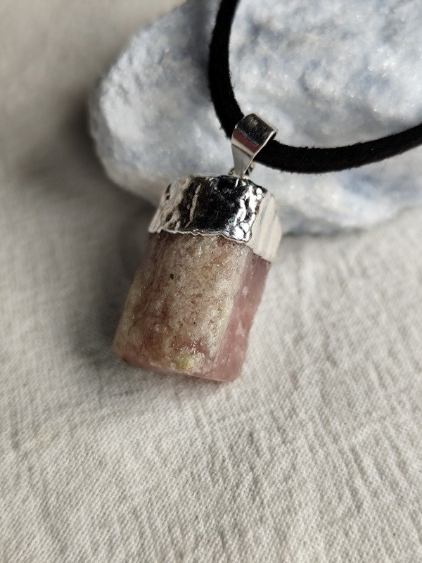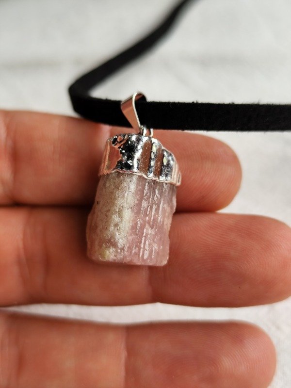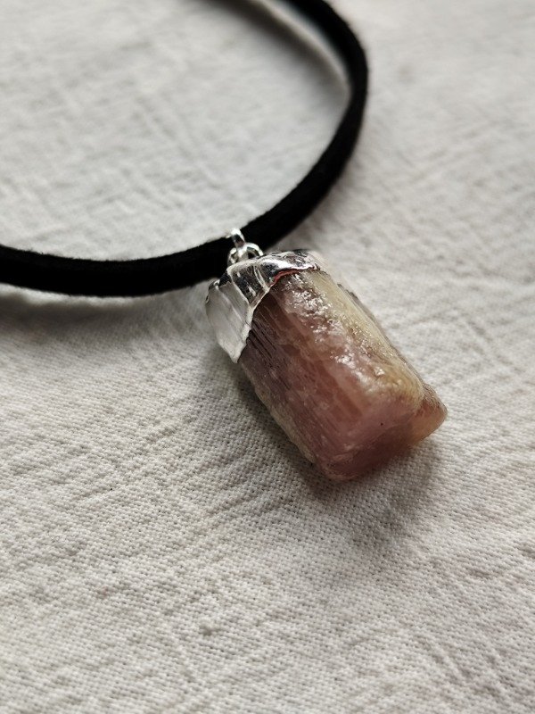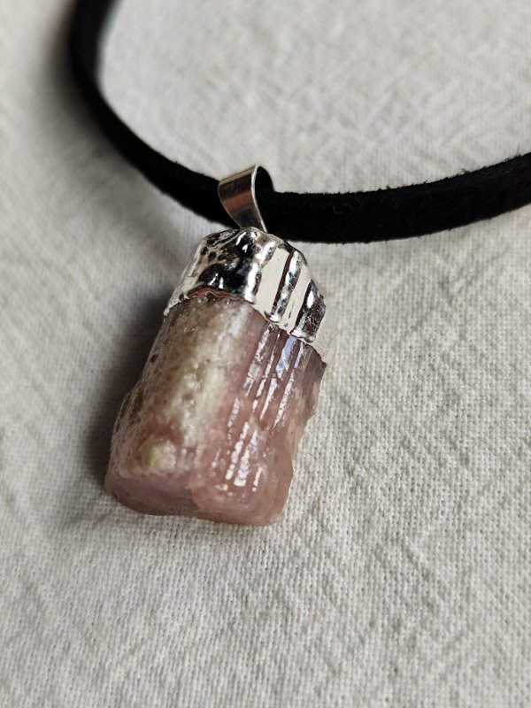DIJE DE TURMALINA ROSA PURA CON BAÑO DE PLATA.