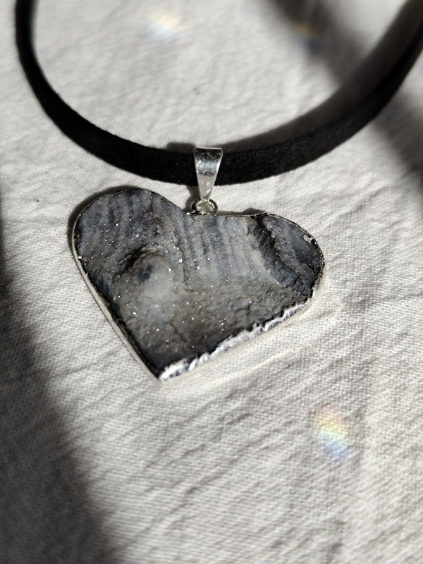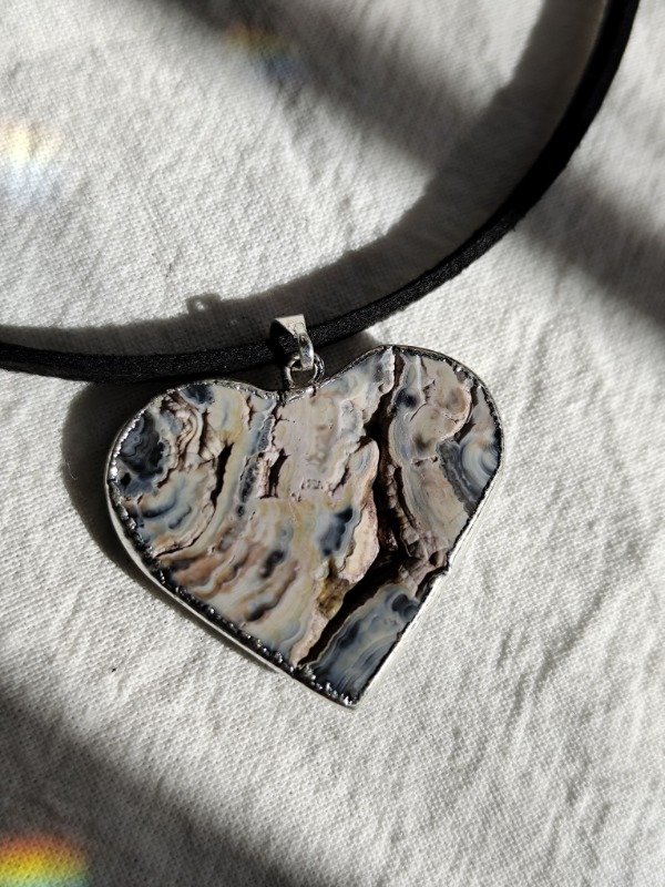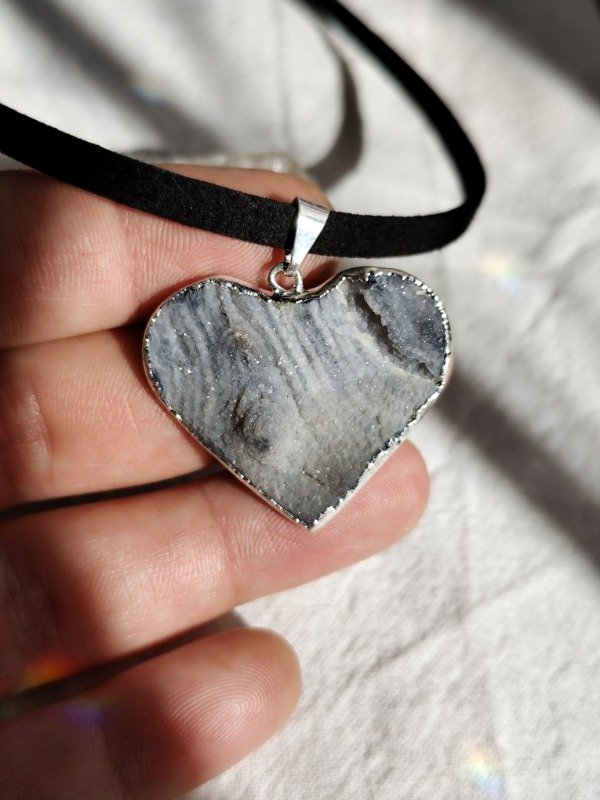 Collar corazón de Ágata Calcedonia con baño de plata. Hermosa pieza! ÚNICA ✨ Podés ver en las fotos el lado exterior de la piedra.