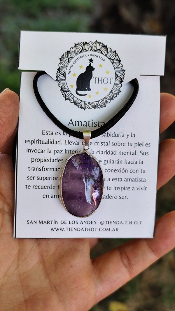 La amatista es una piedra extraordinariamente poderosa y protectora, con una elevada vibración espiritual. Protege del ataque psíquico transmutando la energía en amor, Siendo un tranquilizante natural, la amatista bloquea las tensiones geopáticas y las energias ambientales negativas. Su serenidad potencia los estados elevados de conciencia y meditación. Tiene grandes poderes curativos y limpiadores, y potencia la conciencia espiritual Tradicionalmente se llevaba puesta para evitar la borrachera, y tiende a producir sobriedad en las pasiones fisicas. Supera adicciones y bloqueos de todo tipo Usada a nivel superior, la amatista te abre a otra realidad.
