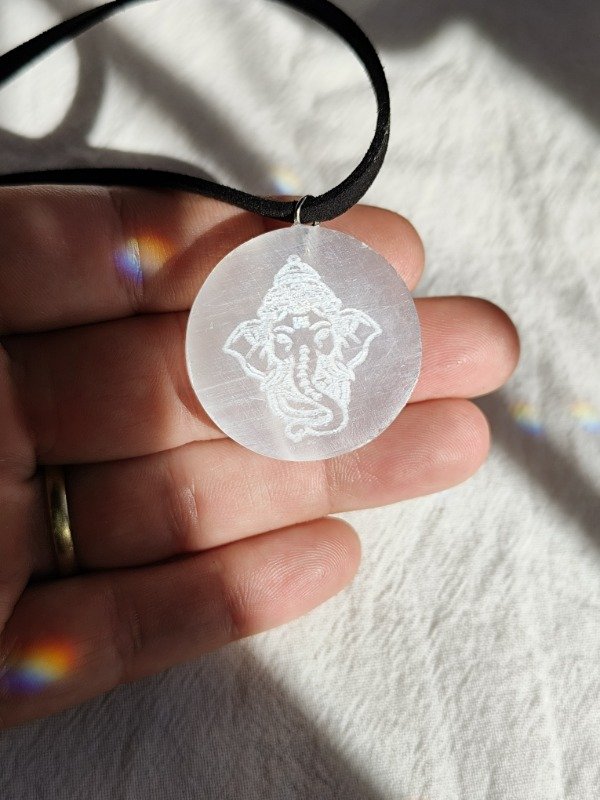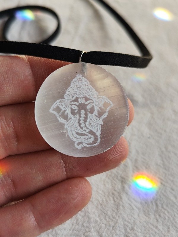 Collar medallón placa de Selenita con Ganesha grabada, hermosa!!!