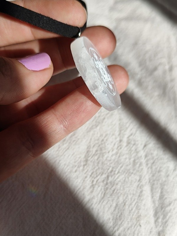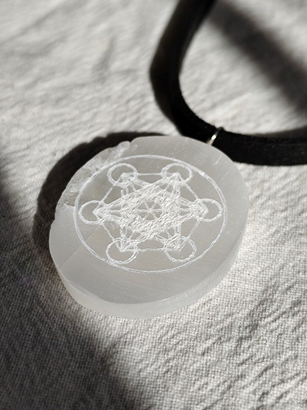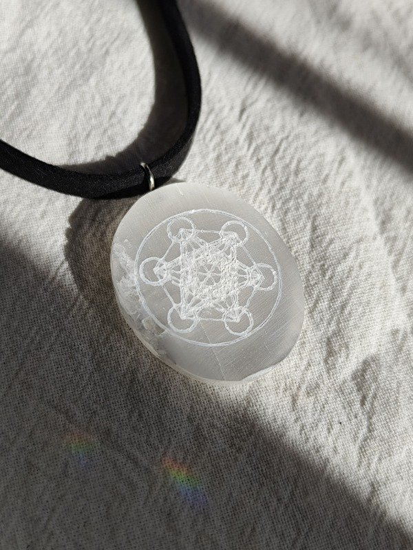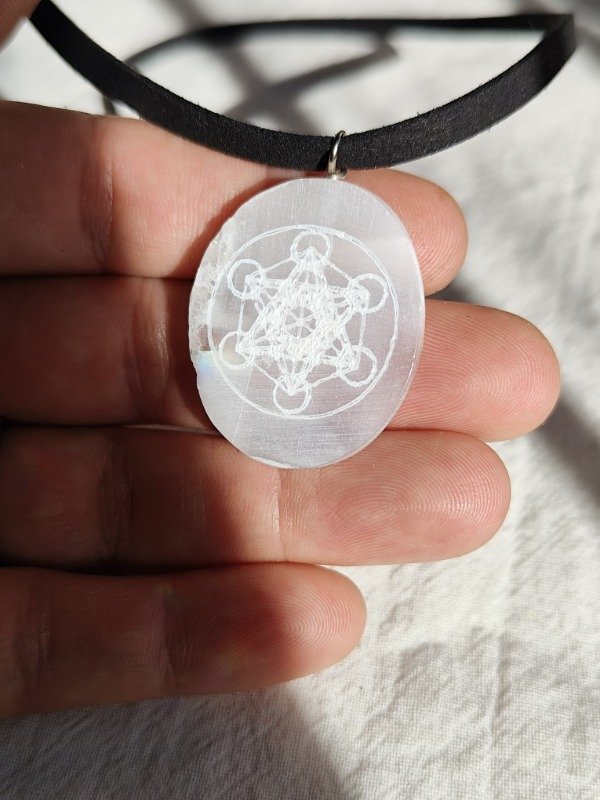 Collar medallón placa de Selenita con METATRON grabada, hermosa!!!